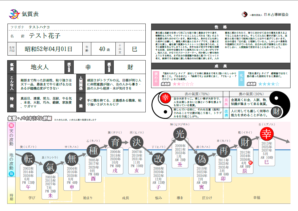 氣質表 IMCプレミアム会員の氣質表をお持ちの方は「1」「2」の鑑定料金【10%OFF】